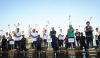 DIKSIMERDEKA.COM, BADUNG - Gubernur Bali Wayan Koster turun langsung menanam mangrove di Taman...