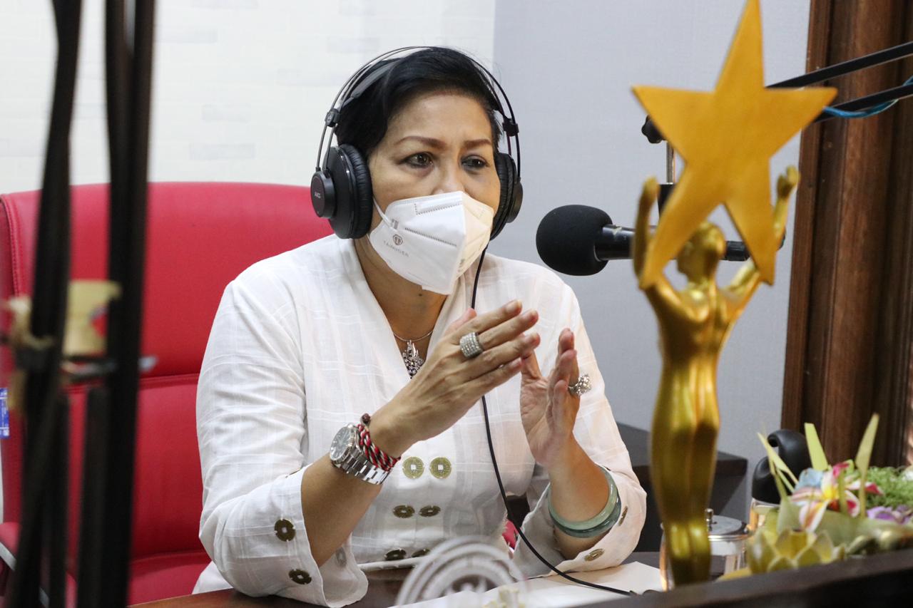 DIKSIMERDEKA.COM, DENPASAR, BALI – Ketua TP PKK Provinsi Bali Ny Putri Koster tak pernah bosan mengkampanyekan upaya pencegahan penularan Covid-19 melalui penerapan 3M (Memakai Masker, Mencuci Tangan dan Menjaga Jarak). Kampanye itu gencar dilakukannya melalui media sosial, TV dan radio. Pada Kamis (3/12), perempuan yang akrab disapa Bunda Putri ini mengkampanyekan gerakan ‘Ingat Pesan Ibu 3M’ melalui dialog interaktif yang disiarkan Radio Genta Denpasar.