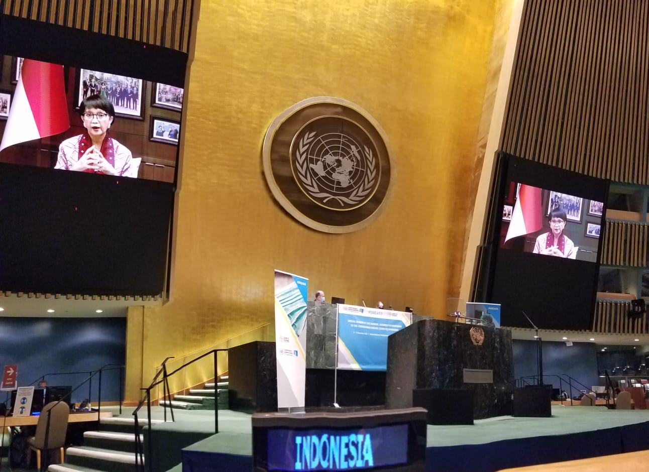 DIKSIMERDEKA.COM, JAKARTA – “Ditemukannya vaksin bukanlah akhir dari tantangan. Tugas kita berikutnya adalah memastikan vaksin dapat diakses dan didistribusikan dengan adil bagi semua,” tegas Menteri Luar Negeri (Menlu) Retno Marsudi pada Sesi Khusus Sidang Majelis Umum PBB untuk menanggapi pandemi COVID-19 yang diselenggarakan secara virtual dari New York tanggal 3-4 Desember 2020.