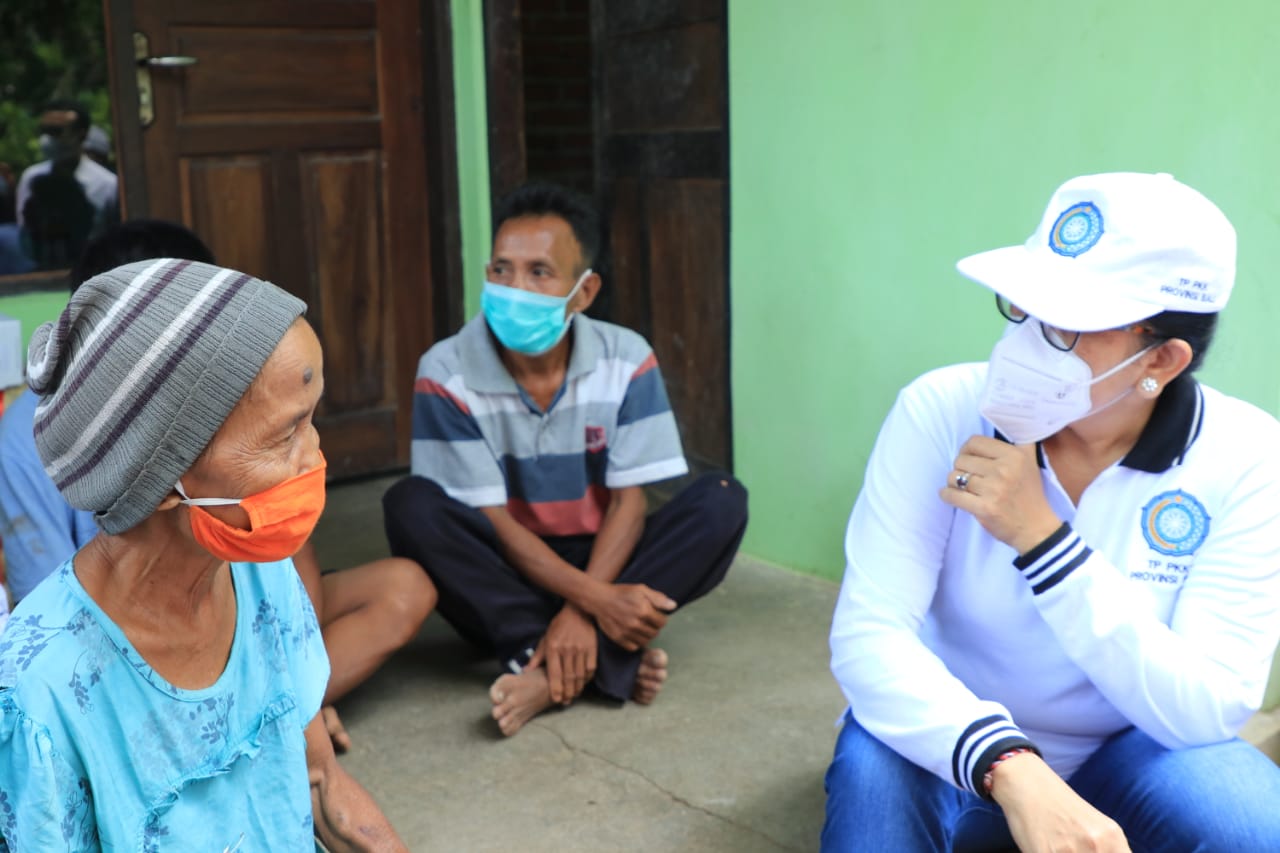 DIKSIMERDEKA.COM, BULELENG, BALI – Ketua Tim Penggerak (TP) PKK Provinsi Bali Ny Putri Suastini Koster menyambangi sejumlah warga yang membutuhkan bantuan di Kecamatan Banjar, Kabupaten Buleleng, guna menyerahkan bantuan bahan pokok dan alat penunjang kesehatan.