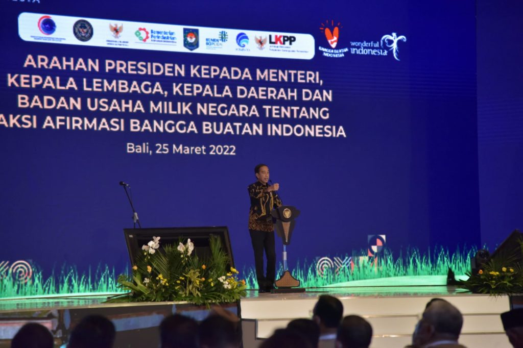 Hal ini disampaikan Presiden pada arahannya kepada kegiatan Arahan Presiden kepada Menteri, Kepala Lembaga, dan Kepala Daerah dan Badan Usaha Milik Negara tentang Aksi Afirmasi Bangga Buatan Indonesia, di Hotel Grand Hyatt Nusa Dua, Bali, Jumat (25/03).