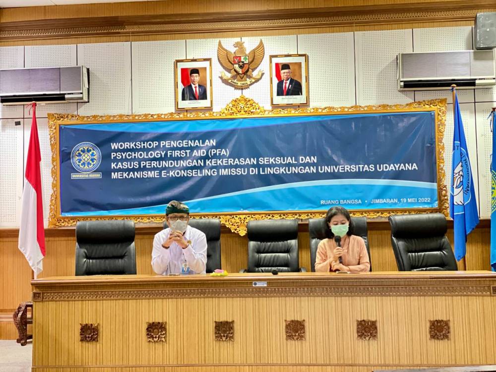 Ketua Unit Bimbingan Konseling dan Advokasi Mahasiswa Universitas Udayana Dra. Adijanti Marheni,M.Si dalam laporannya menyampaikan bahwa workshop ini dilakukan mengingat akhir-akhir ini terdapat beberapa kasus kekerasan seksual di lingkungan mahasiswa. Untuk itu, kegiatan ini diharapkan dapat menjadi bekal bagi para konselor/dosen pembimbing, supaya pada saat bertugas dapat melakukan penanganan dengan tepat sesuai dengan Psychology Fisrt Aid.