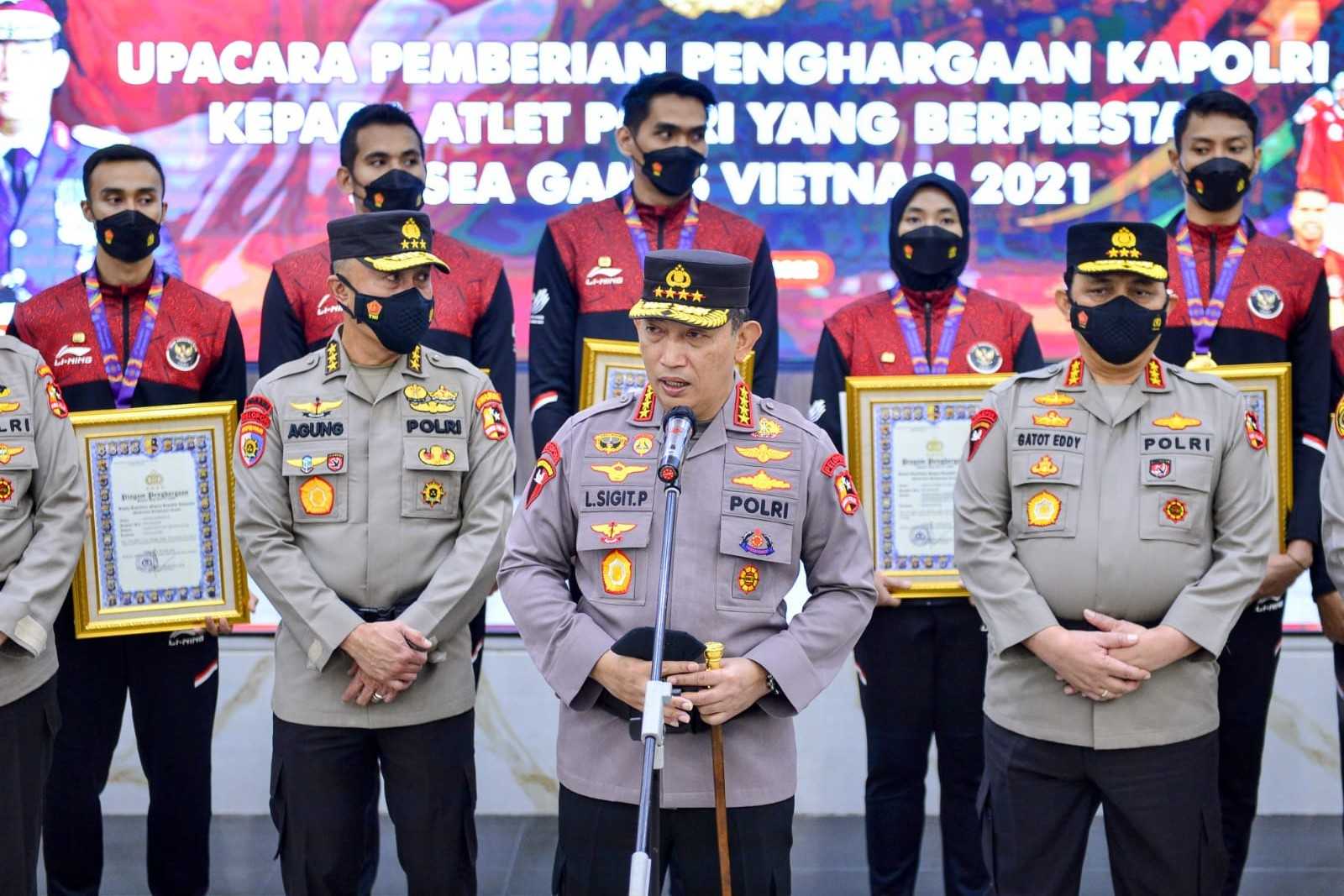 DIKSIMERDEKA.COM, JAKARTA – Kapolri Jenderal Listyo Sigit Prabowo memberikan penghargaan sebagai bentuk apresiasi kepada personel Polri sebagai atlet yang telah menyumbangkan medali emas, perak dan perunggu untuk Indonesia dalam perhelatan Sea Games Vietnam.