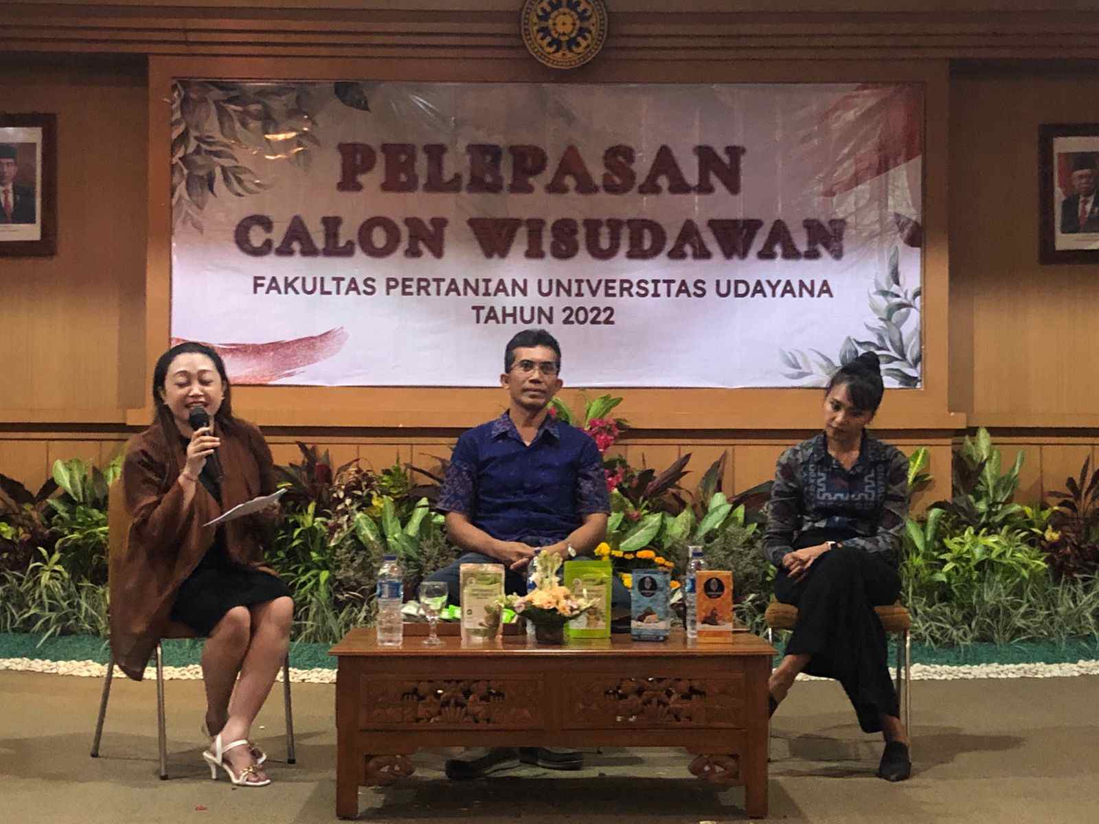 Yudisium FP Unud Juni 2022 diisi dengan motivation session yang menghadirkan pelaku wirausaha bidang pertanian yakni Presdir POD Chocolate dan Anggota DPRD Kabupaten Badung IGAA Trimafo Yudha dan Direktur Utama PT Bali Agro Investama Dip-Ing. I Ketut Kartika Tanjana. Talkshow yang dipandu dosen Prodi Agribisnis Dr. Putu Udayani Wijayanti, SP., M.Agb disambut antusias oleh calon wisudawan, mahasiswa, dosen, serta alumni FP Unud yang secara khusus hadir mengikuti kegiatan talkshow.