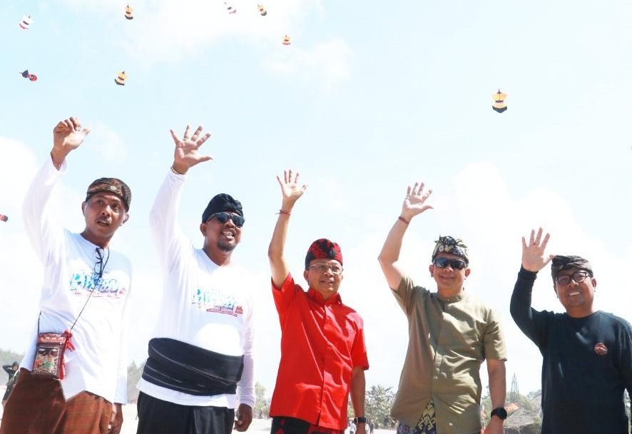 “Untuk itu, kedepan Saya akan matangkan, tingkatkan kualitasnya menjadi event yang menarik masyarakat Indonesia dan dunia. Selamat berlomba dan Saya dukung penuh kreativitas anak muda Bali melayangan, pungkas orang nomor satu di Pemprov Bali ini sembari ikut berbaur menarik tali layangan dengan peserta lomba yang kompak menggunakan busana adat Bali serta diiringi oleh alunan gambelan, hingga tembang Bali berupa cecondongan yang berkaitan dengan Dewa Bayu ditengah terik matahari,” jelasnya.