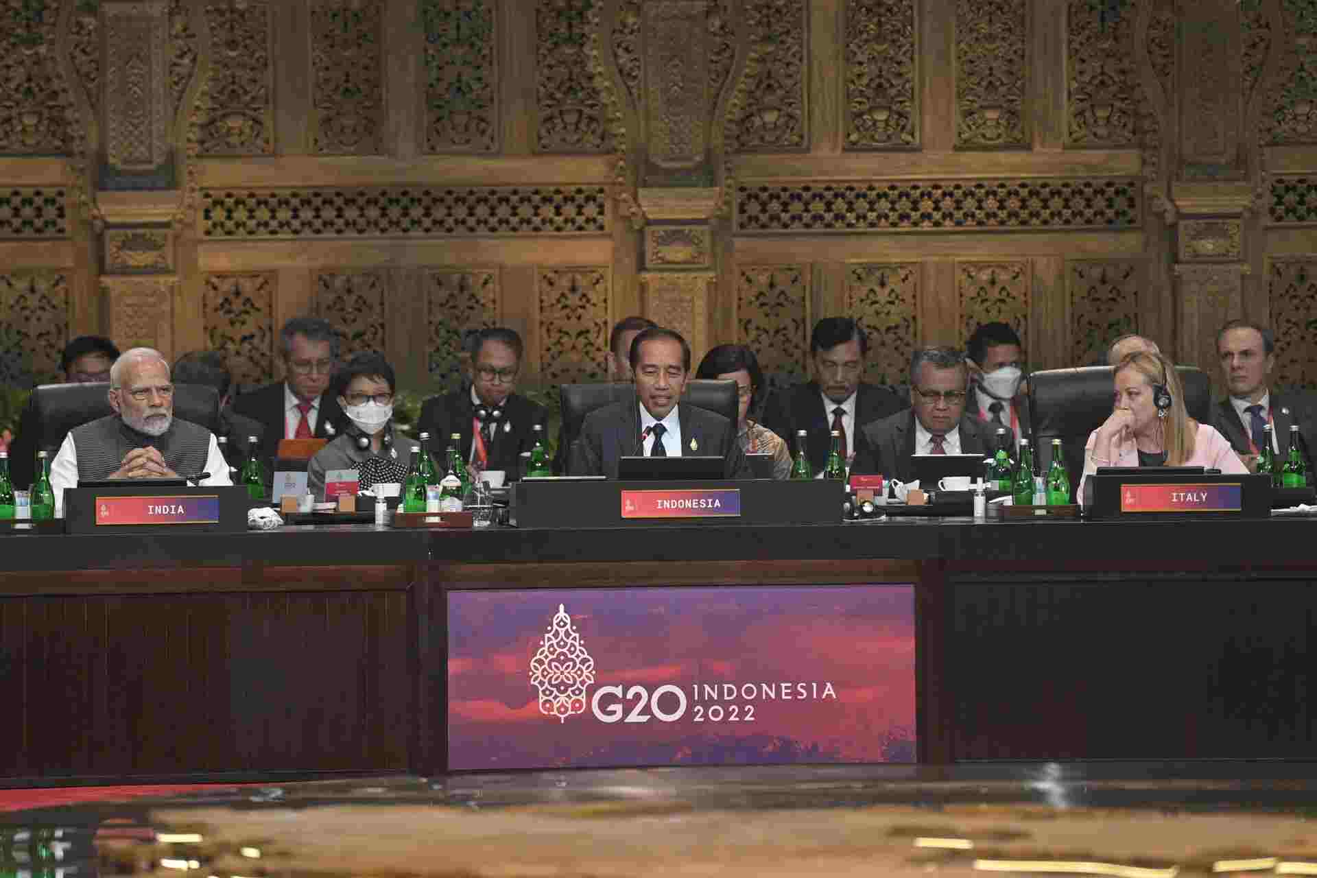 “G20 terus menjadi katalis pemulihan ekonomi yang inklusif di tengah dunia yang sedang sulit,” kata Presiden Joko Widodo (Jokowi) ketika menyampaikan pernyataan pembukaan di Konferensi Tingkat Tinggi (KTT) G20 di Hotel Apurva Kempinski, Nusa Dua, Badung, Bali pada Selasa (15/11/2022).