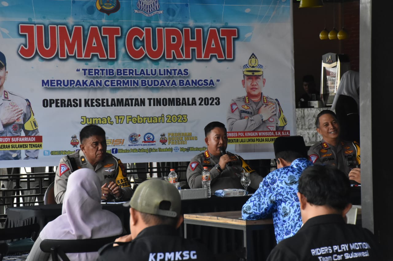 Menurut Dirlantas Polda Sulteng Kombes Polisi Kingkin Winisuda, kegiatan ‘Jumat Curhat’ adalah salah satu program Kapolri yang bertujuan menemukan sekaligus menyelesaikan masalah yang ada di tengah masyarakat.