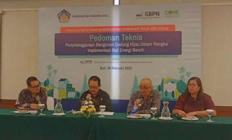 DIKSIMERDEKA.COM, DENPASAR, BALI – Pemerintah Provinsi Bali hari ini resmi menerbitkan Pedoman Teknis untuk Bangunan Gedung Hijau untuk Provinsi Bali melalui Keputusan Gubernur Bali Nomor 879 tahun 2022 tentang Pedoman Teknis Penyelenggaraan Bangunan Gedung Hijau dalam Rangka Implementasi Bali Energi Bersih yang dirangkai dengan diskusi sebagai sosialisasi mendukung pengembangan bangunan gedung rendah karbon di Bali berlangsung di Prime Plaza Hotel, Sanur, Selasa (28/2/2023).