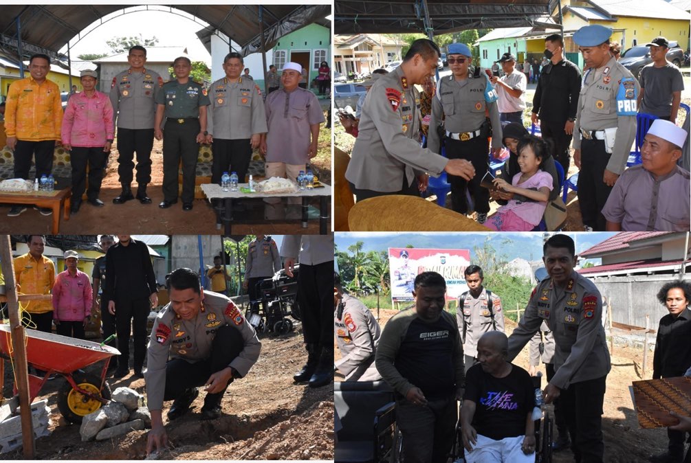 “Hari ini telah dilaksanakan peletakan batu pertama bedah rumah warga di Jalan Bukit Aladin Kelurahan Talise, Palu,” ujar Kompol Sugeng lestari.