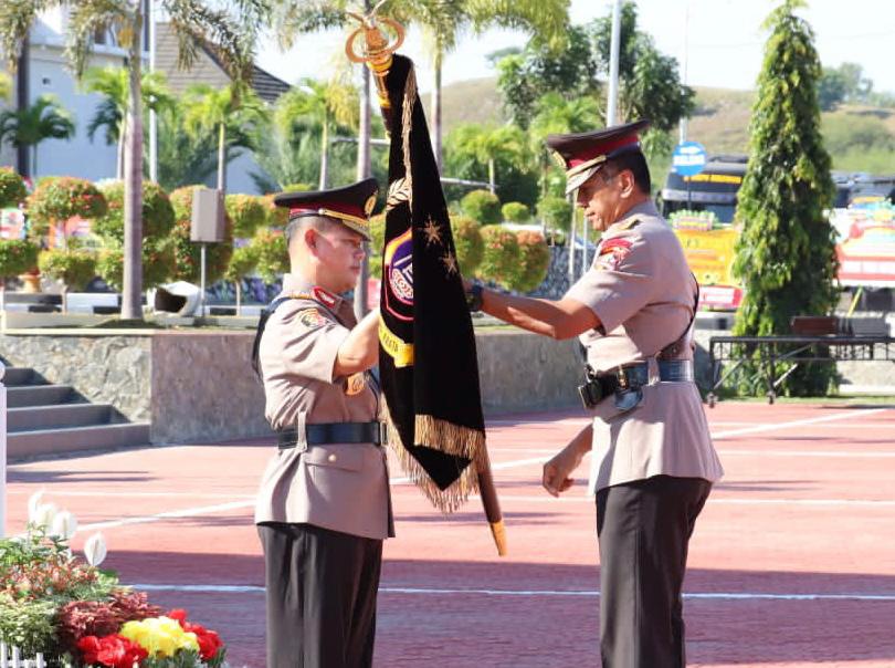 Berlangsung di halaman Apel Polda Sulawesi Tengah, Irjen Rudy Sufahriadi menyerahkan bendera simbol Polda Sulteng itu kepada penerusnya Irjen Agus Nugroho, Kamis (6/4/2023).