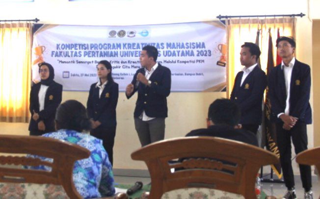 DIKSIMERDEKA.COM, DENPASAR, BALI – Badan Eksekutif Mahasiswa (BEM) Fakultas Pertanian Universitas Udayana (FP Unud) kembali mengadakan kompetisi program kreativitas mahasiswa tingkat universitas tahun 2023 (PKM 2023). Kegiatan ini dilaksanakan pada Sabtu, 27 mei 2023 di ruang kuliah 1, lantai 3, gedung FP Unud, kampus bukit Jimbaran.