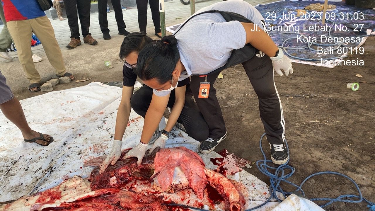 DIKSIMERDEKA.COM, DENPASAR, BALI -Pemerintah Kota Denpasar melakukan pengecekan postmortem di 145 lokasi di 4 kecamatan di Kota Denpasar untuk memantau proses pemotongan hewan kurban pada Idul Adha 1444 Hijriyah, Kamis (29/06/2023).