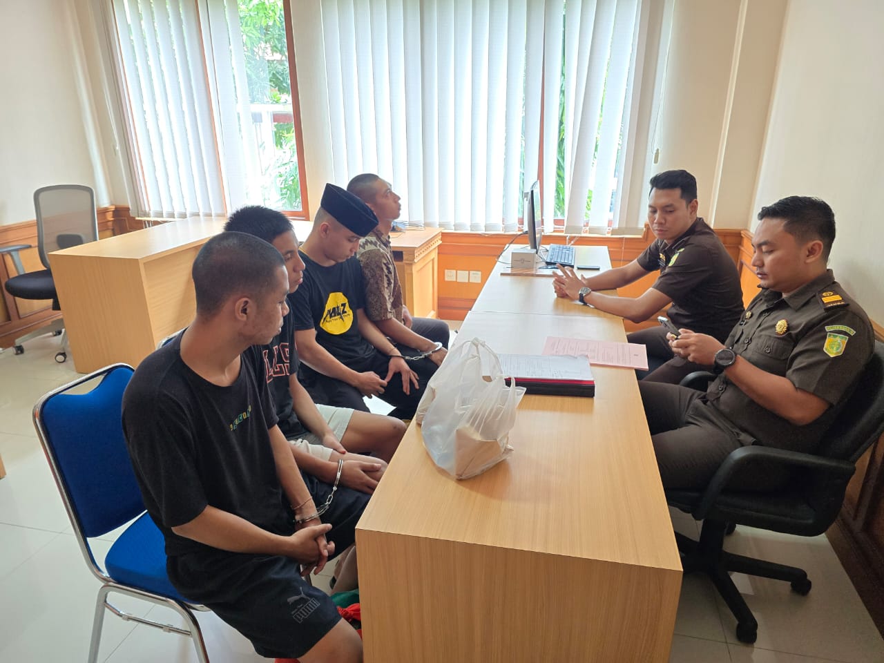 DIKSIMERDEKA.COM, BADUNG, BALI – Jaksa Penuntut Umum (JPU) Kejaksaan Negeri (Kejari) Badung menerima penyerahan tersangka dan barang bukti kasus dugaan tindak pidana pembunuhan oleh kelompok silat di Sempidi berinisial RS, BFHS, OYB, dan AHM dari Penyidik Polres Badung, Rabu (20/03/2024).