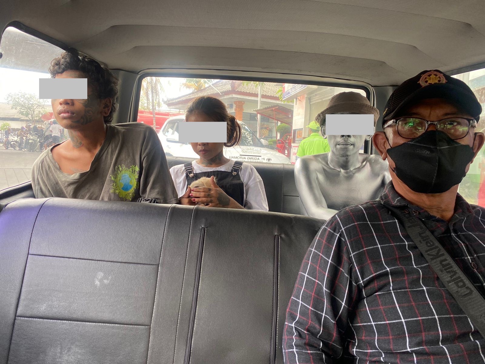 ”Kami berhasil mengamankan 4 orang yang terdiri dari 3 orang manusia silver, dan anak punk, serta 1 orang badut yang keseluruhan berasal dari luar Pulau Bali, dengan aktivitas mengamen di kawasan traffic light tersebut”, ujarnya.