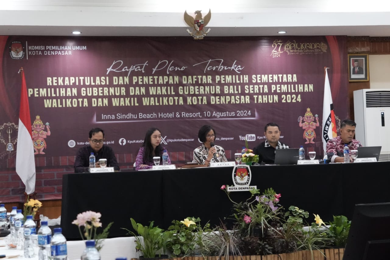 DIKSIMERDEKA.COM, DENPASAR, BALI – KPU Kota Denpasar menetapkan sekitar 507.364 Daftar Pemilih Sementara (DPS) dalam Pemilihan Kepada Daerah (Pilkada) 2024. Penetapan tersebut dilakukan dalam Rapat Pleno Terbuka Rekapitulasi dan Penetapan DPS, bertempat di Inna Sindhu Beach Hotel & Resort Sabtu (10/08/2024).
