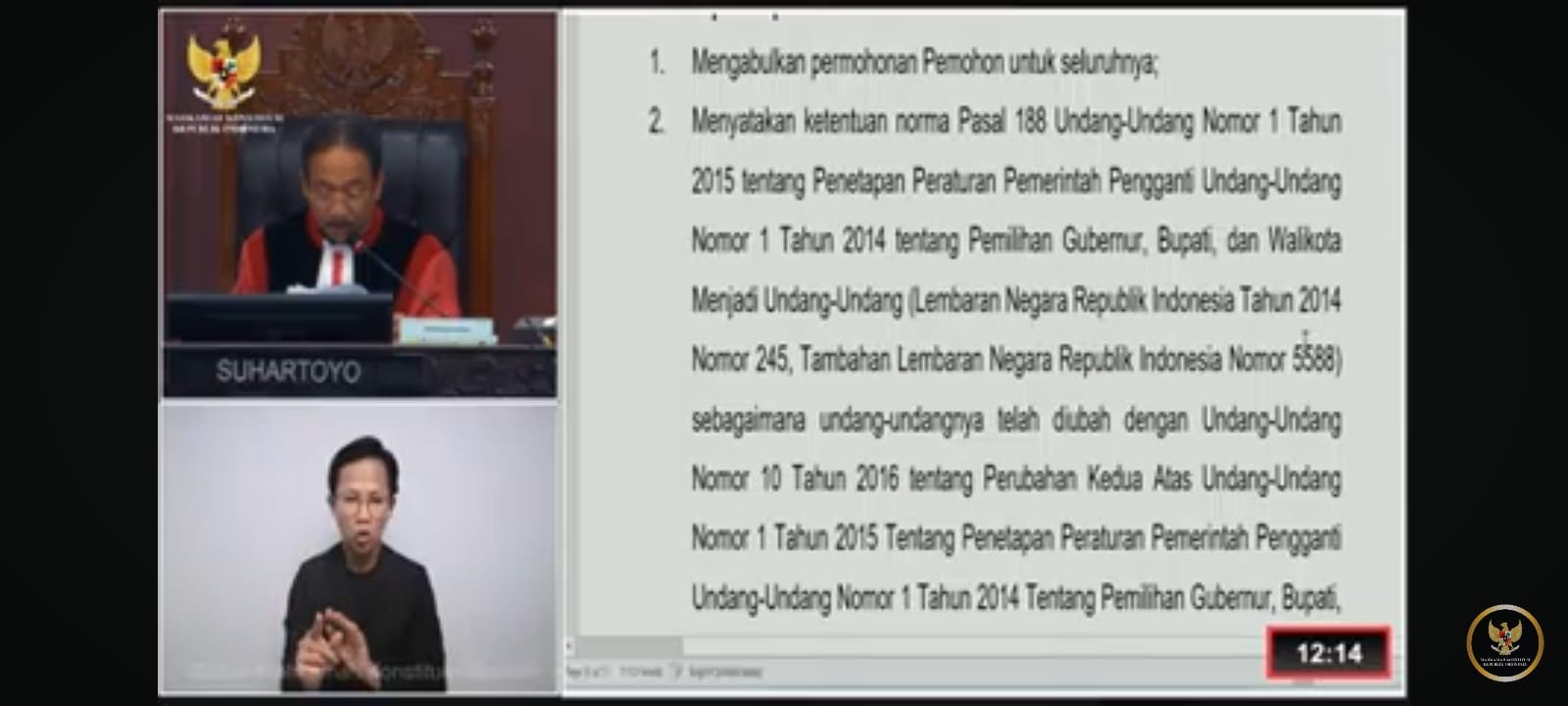 Dengan putusan ini, Pasal 188 UU 1/2015 kini berbunyi: