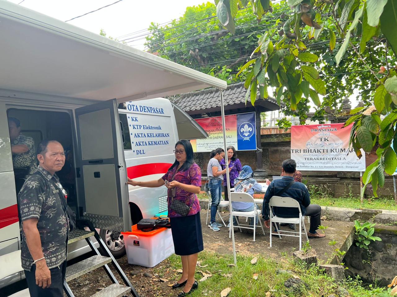 DIKSIMERDEKA.COM, DENPASAR, BALI – Dinas Kependudukan dan Pencatatan Sipil (Disdukcapil) Kota Denpasar terus menggenjot kepemilikan Identitas Kependudukan KTP Elektronik serta administrasi kependudukan (adminduk). Salah satunya dengan melaksanakan Jemput Bola Pelayanan pembuatan KTP El.