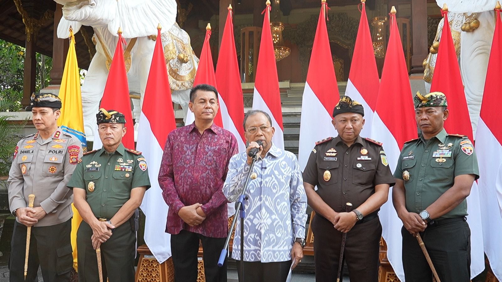 DIKSIMERDEKA.COM, DENPASAR, BALI – Gubernur Bali bersama unsur pimpinan daerah (pimda) lainnya, yakni Ketua DPRD, Pangdam IX/Udayana, Kapolda Bali, Kajati Bali, Ketua Pengadilan Tinggi Denpasar, Danrem 163/Wira Satya, dan Kepala BIN Daerah Bali secara resmi menyatakan penolakan terhadap kehadiran organisasi kemasyarakatan (ormas) yang menjalankan aktivitas berkedok menjaga keamanan, ketertiban dan sosial dengan tindakan premanisme, kekerasan dan intimidasi di pulau Bali.