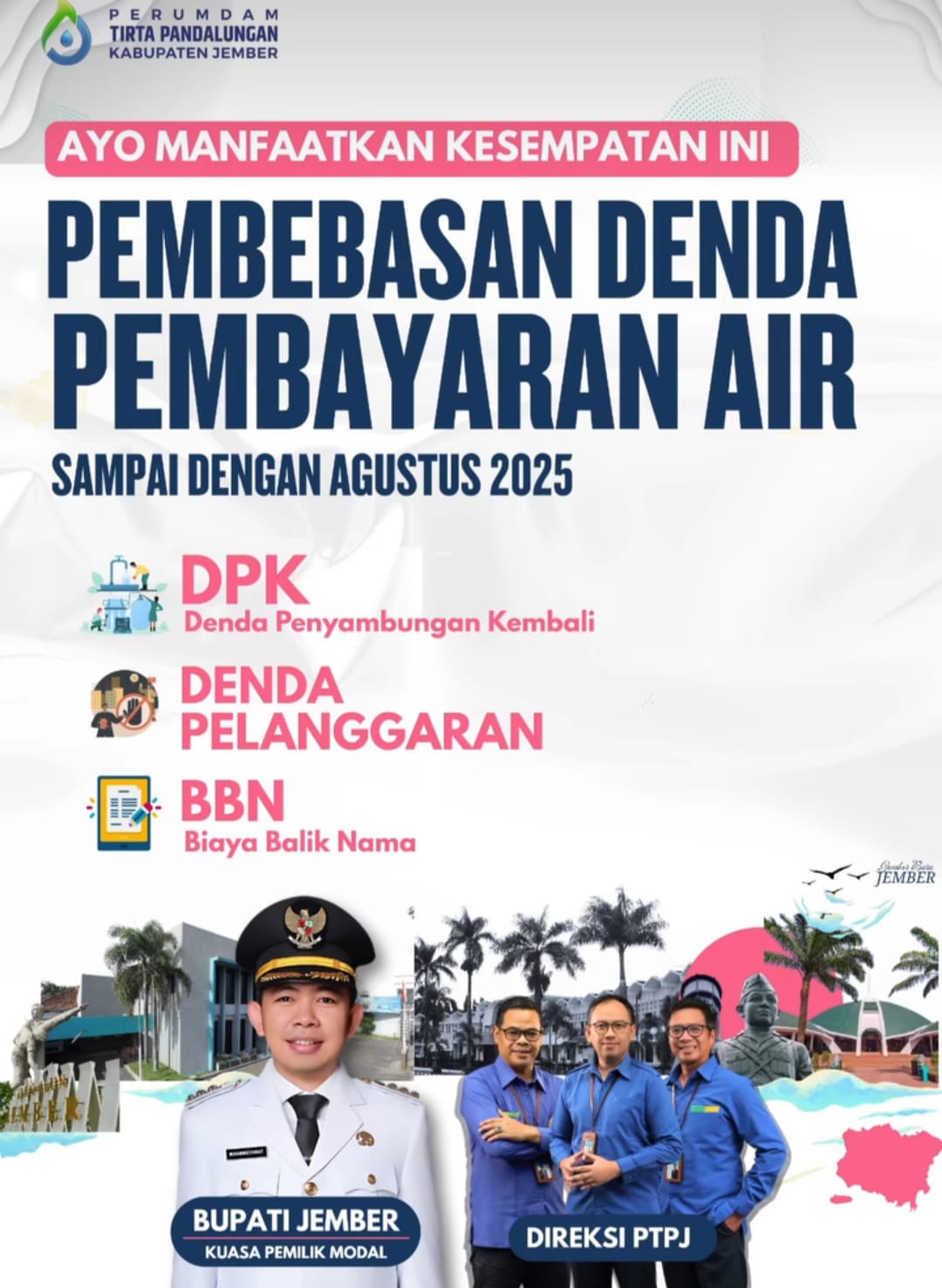 DIKSIMERDEKA.COM, JEMBER – Perumdam Tirta Pandalungan Jember meluncurkan program pemulihan layanan air dengan menghapus denda pelanggan, demi mendorong keterjangkauan dan peningkatan jangkauan layanan.
