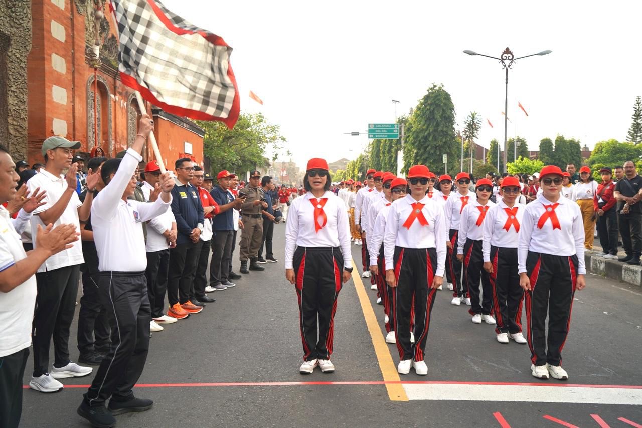 Dengan spirit Mahottama, Lomba Gerak Jalan ini dilepas Bupati Klungkung, I Made Satria bersama Wakil Bupati Klungkung, Tjokorda Gde Surya Putra. g Gede Lesmana serta OPD terkait lainnya.
