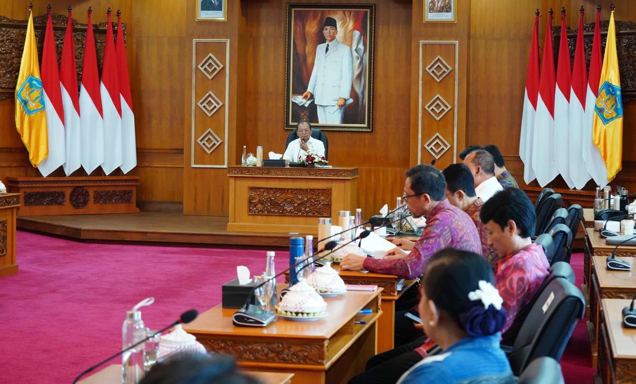 DIKSIMERDEKA.COM, DENPASAR, BALI – Gubernur Bali Wayan Koster memimpin Rapat Evaluasi Tim Kerja Percepatan Pelaksanaan Pembatasan Plastik Sekali Pakai dan Pengelolaan Sampah Berbasis Sumber, Rabu (3/9/2025). Dalam arahannya, Gubernur Koster menegaskan pentingnya penguatan enam lembaga pelaksana sebagai ujung tombak penanganan sampah berbasis sumber.