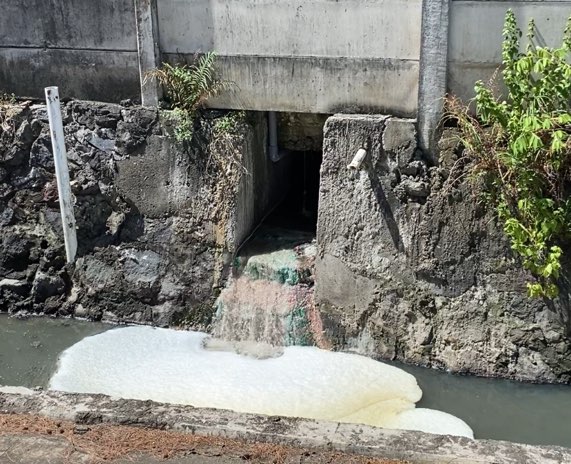 Limbah pengolahan ikan PT Bandar Nelayan di Kelurahan Pedungan Denpasar yang dibuang ke selokan.