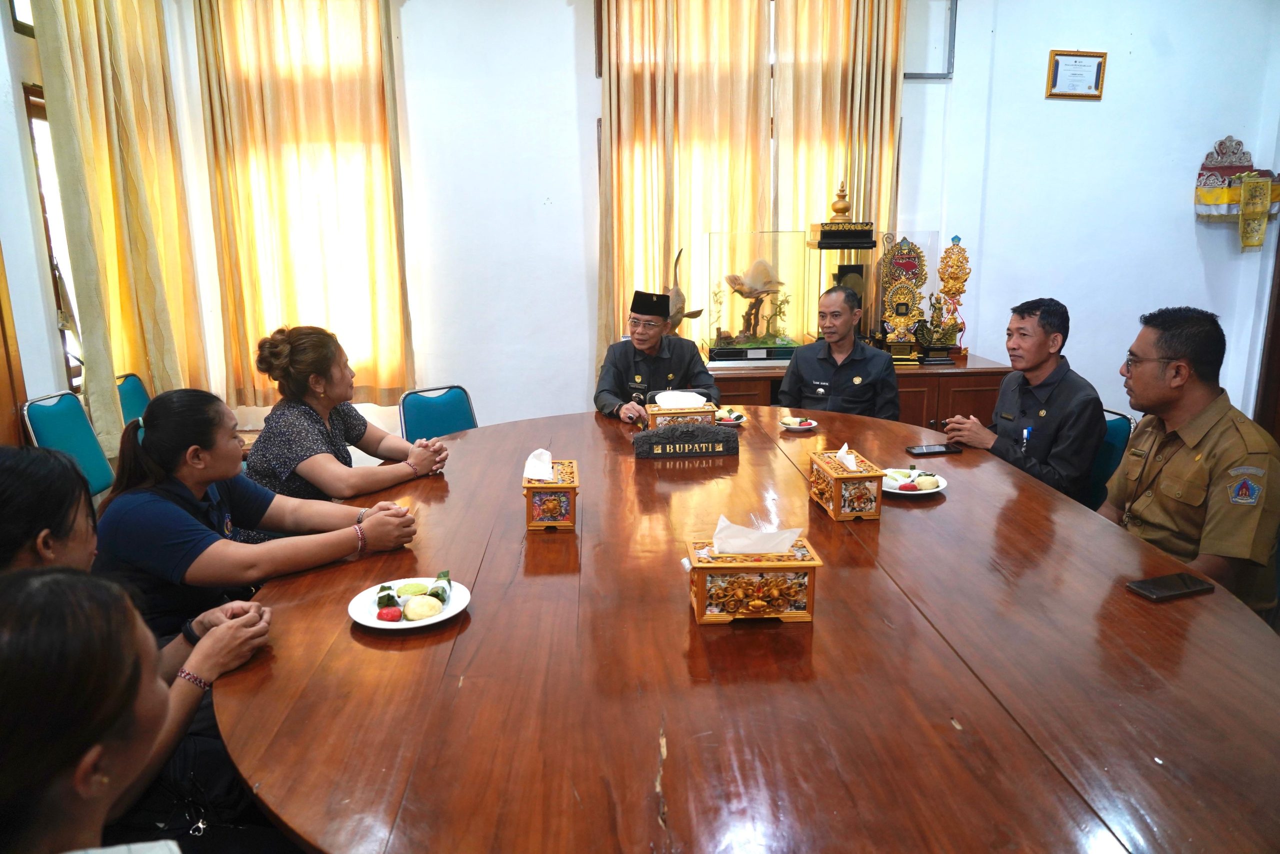 DIKSIMERDEKA.COM, KLUNGKUNG — Suasana haru sekaligus bangga menyelimuti ruang rapat Kantor Bupati Klungkung saat Bupati Klungkung I Made Satria didampingi Wakil Bupati Tjokorda Gde Surya Putra memberikan motivasi kepada dua warga yang akan berangkat bekerja ke luar negeri, Senin (27/4/2026).