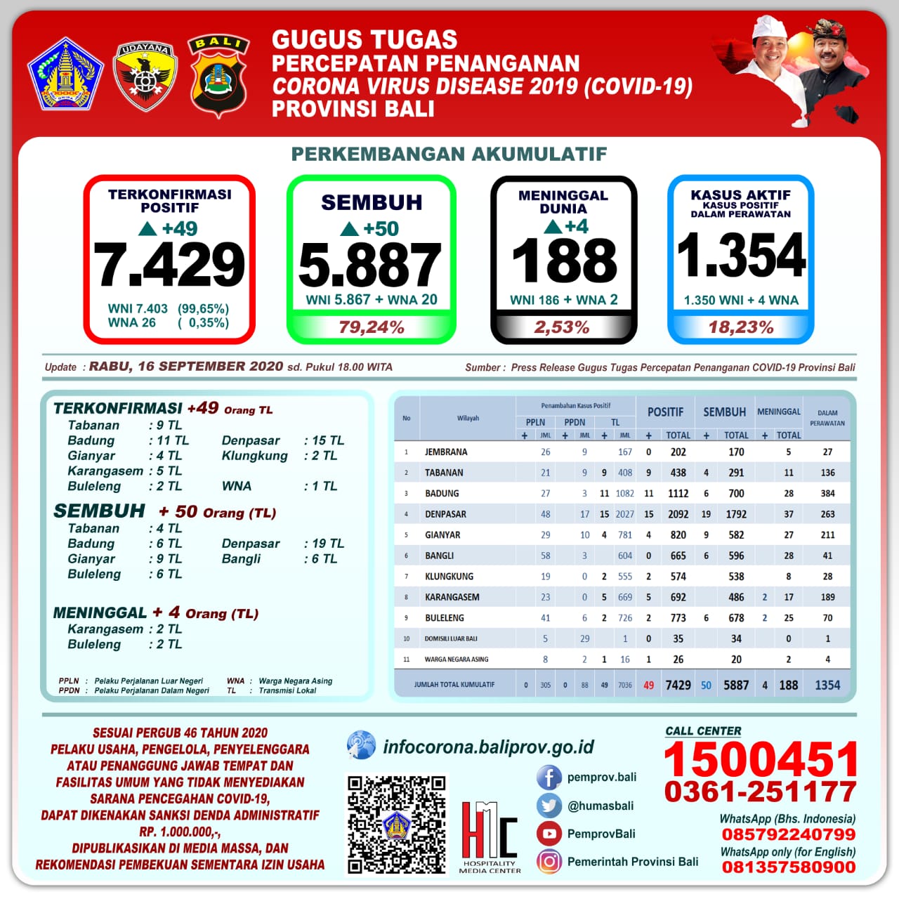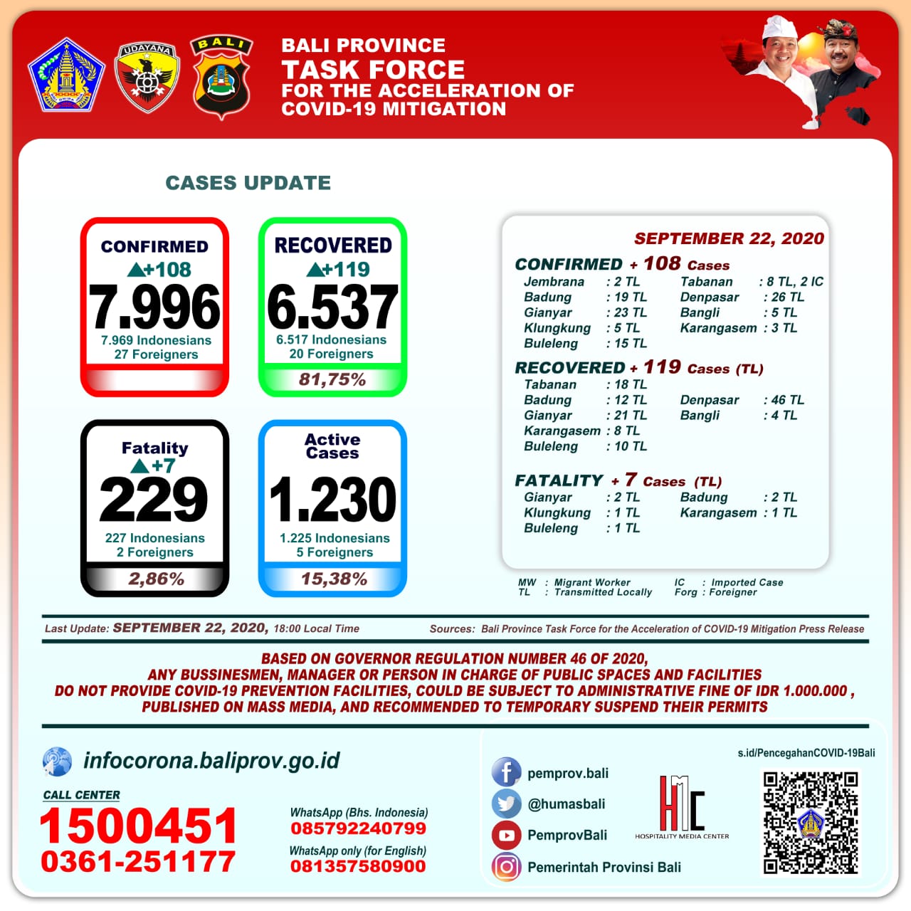 Update Covid-19 Selasa (22/9): Pertambahan Kasus Terkonfirmasi Sebanyak 108 Orang