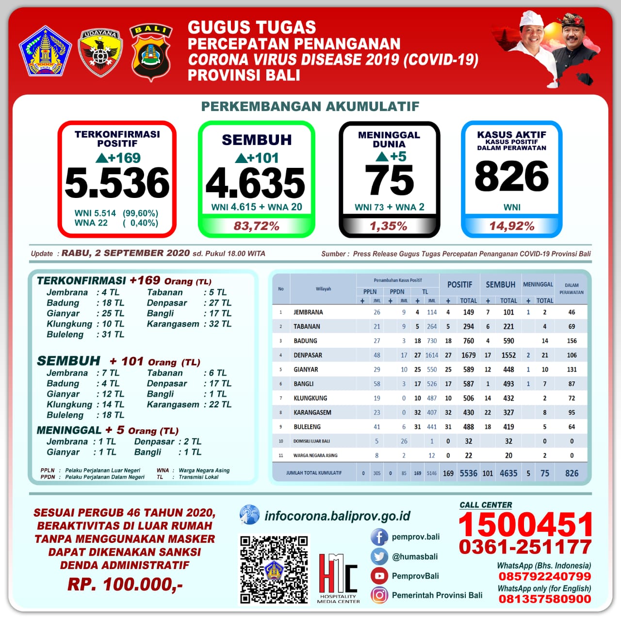 Update Kasus Covid-19 Sabtu (5/9): 165 Terkonfirmasi Positif Baru dan 94 Sembuh