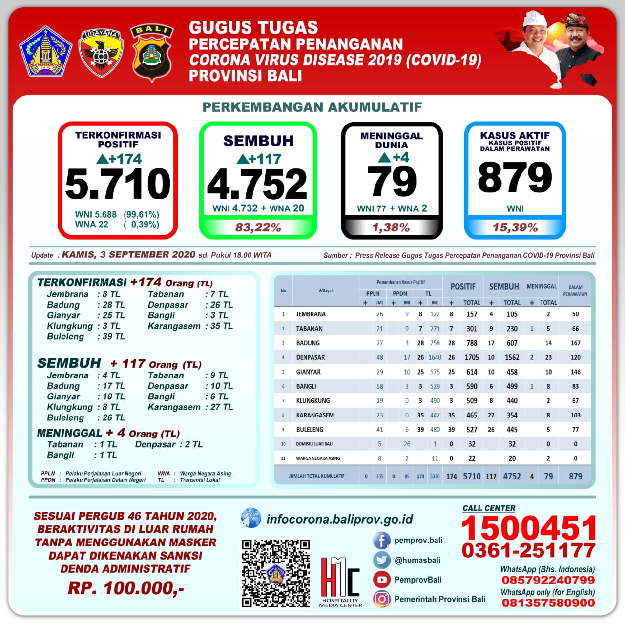 DIKSIMERDEKA.COM, DENPASAR, BALI - Perkembangan Pandemi Covid-19 di Provinsi Bali per hari ini...