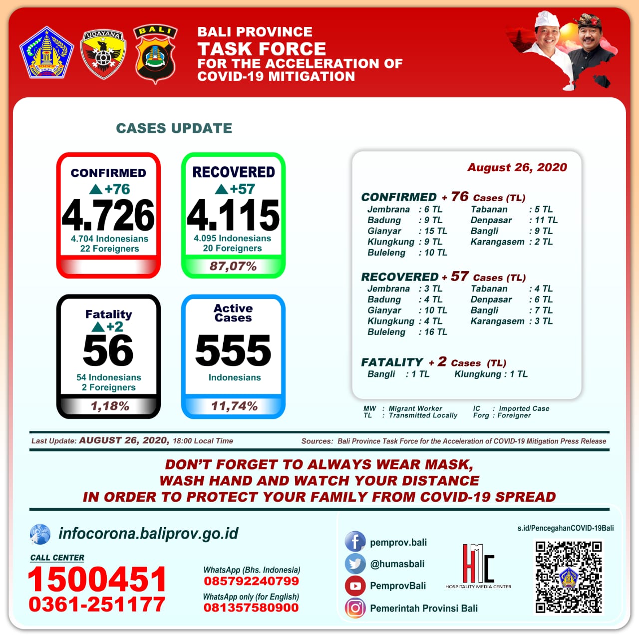 DIKSIMERDEKA.COM, DENPASAR, BALI - Perkembangan Pandemi Covid 19 di Provinsi Bali per Rabu (26/8)...