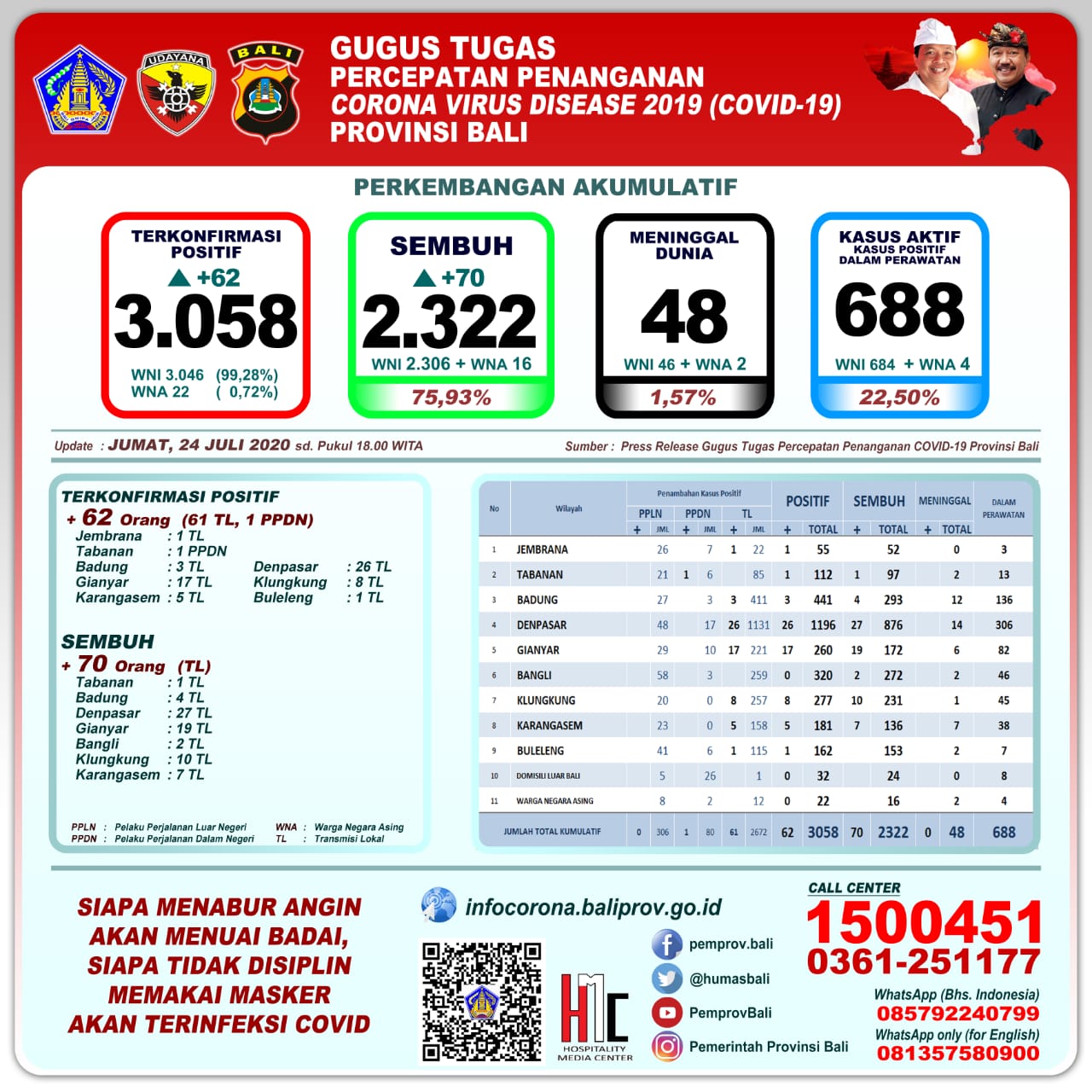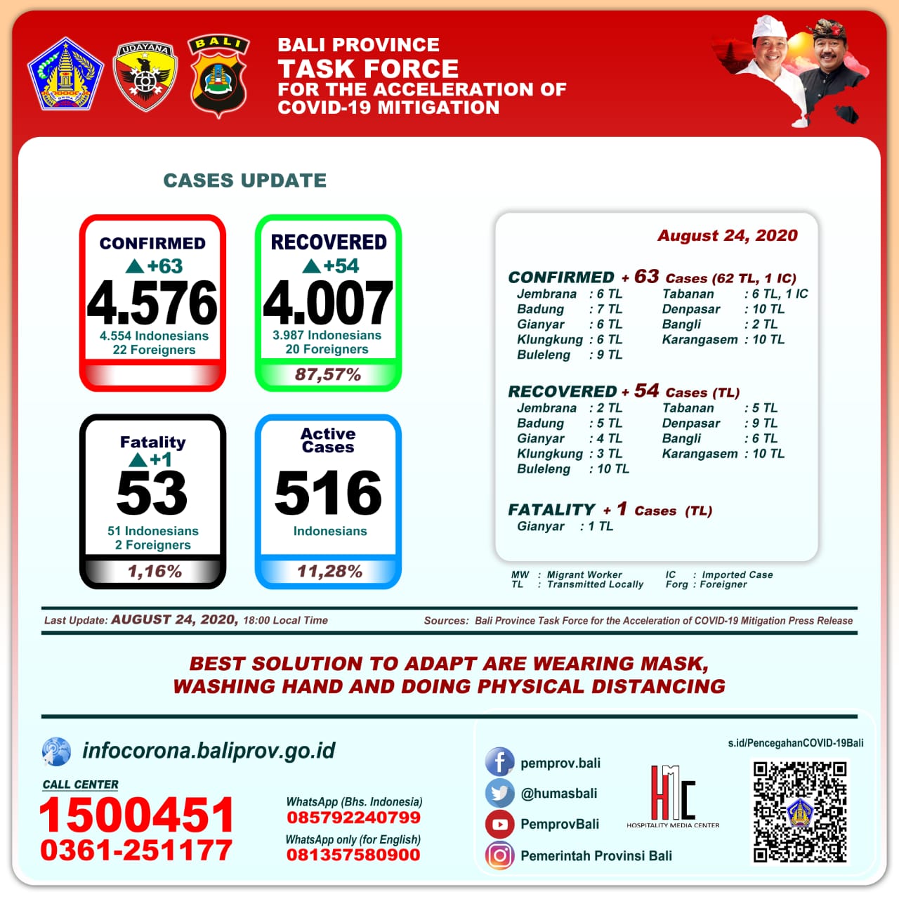 DIKSIMERDEKA.COM, DENPASAR, BALI - Perkembangan Pandemi Covid 19 di Provinsi Bali per Senin (24/8)...