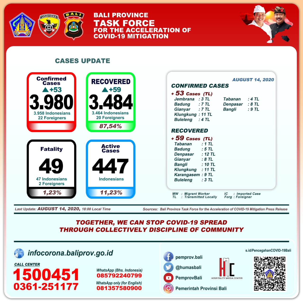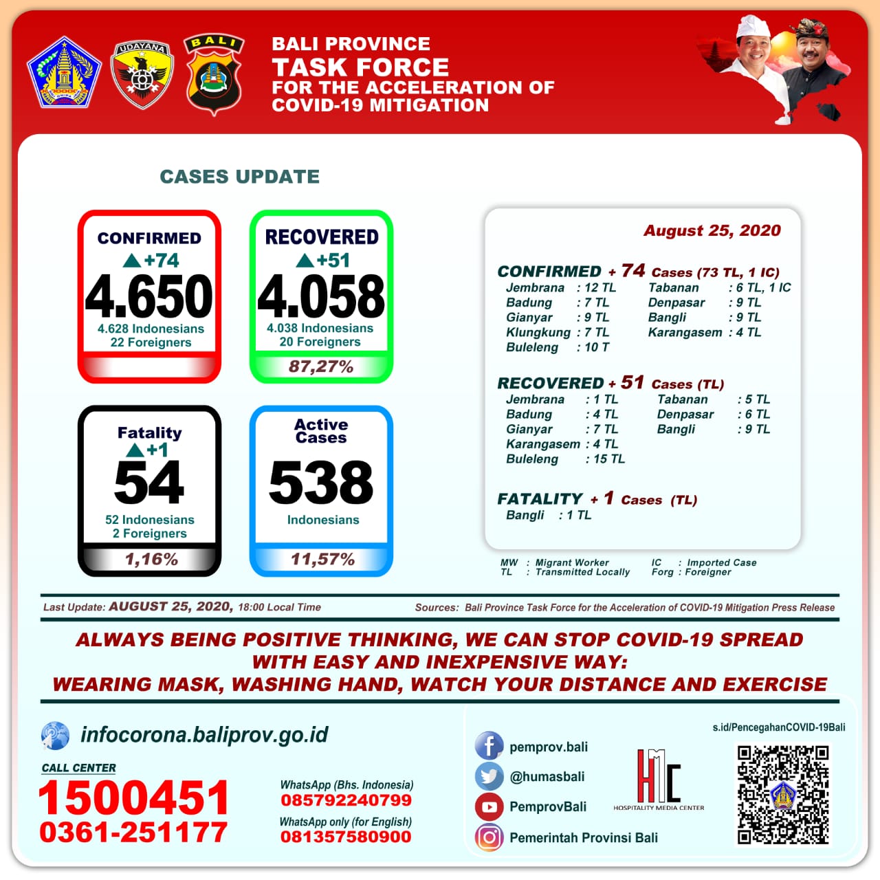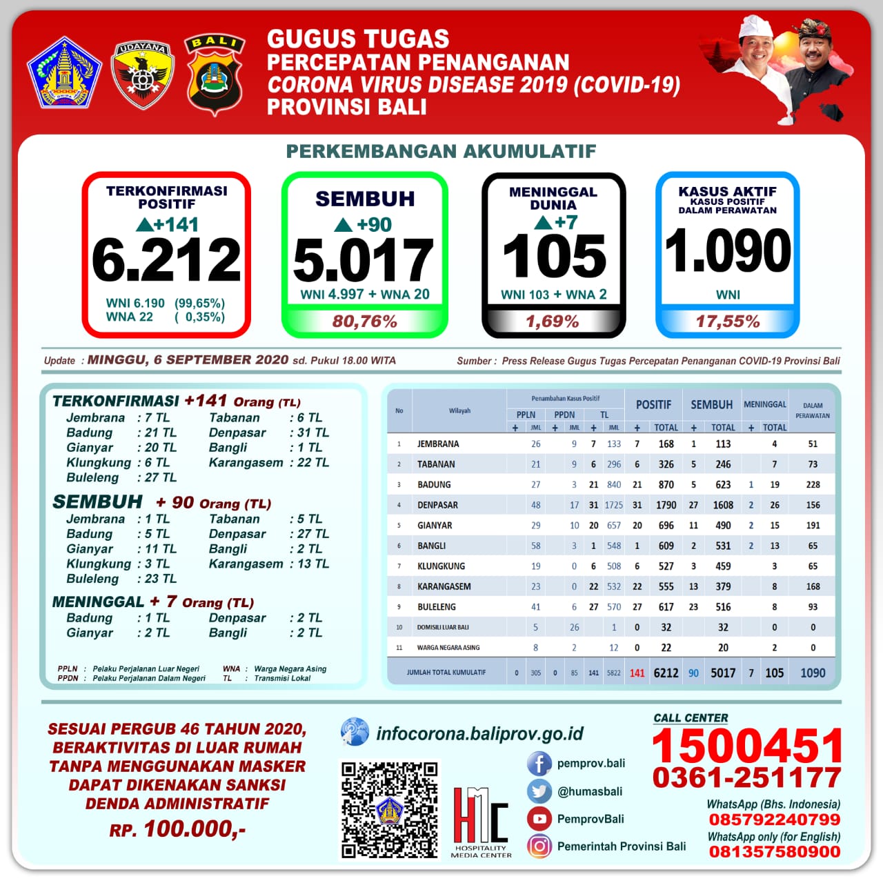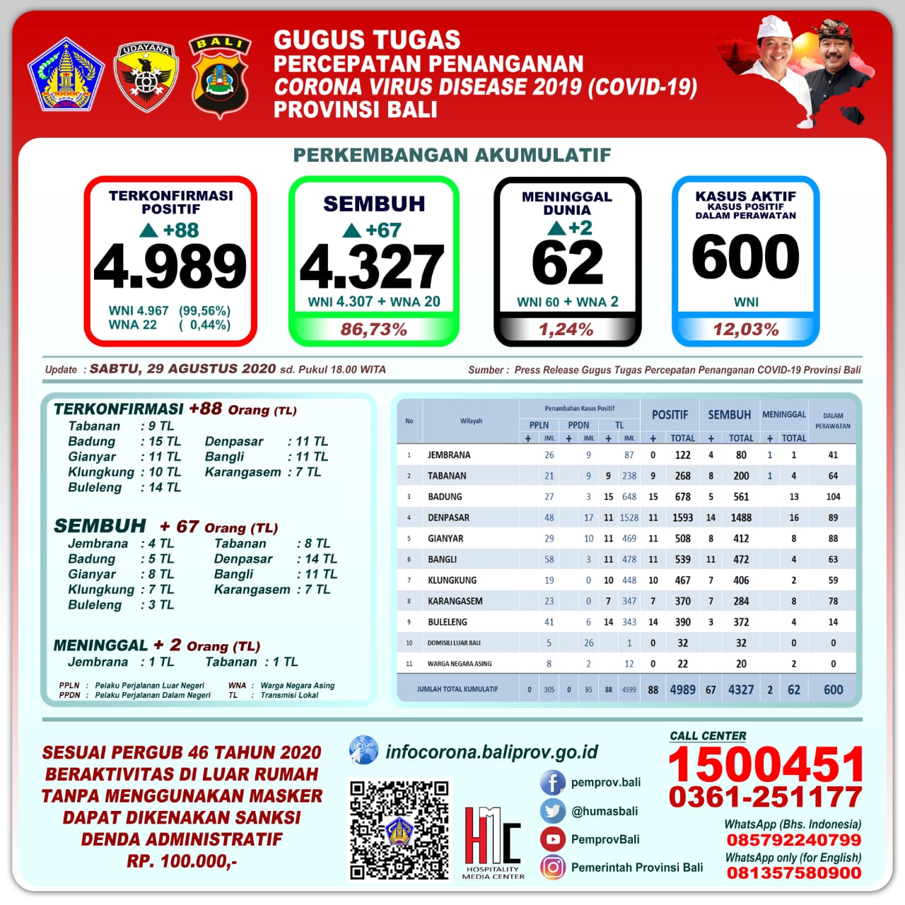 DIKSIMERDEKA.COM, DENPASAR, BALI - Perkembangan Pandemi Covid 19 di Provinsi Bali per Sabtu (29/8)...
