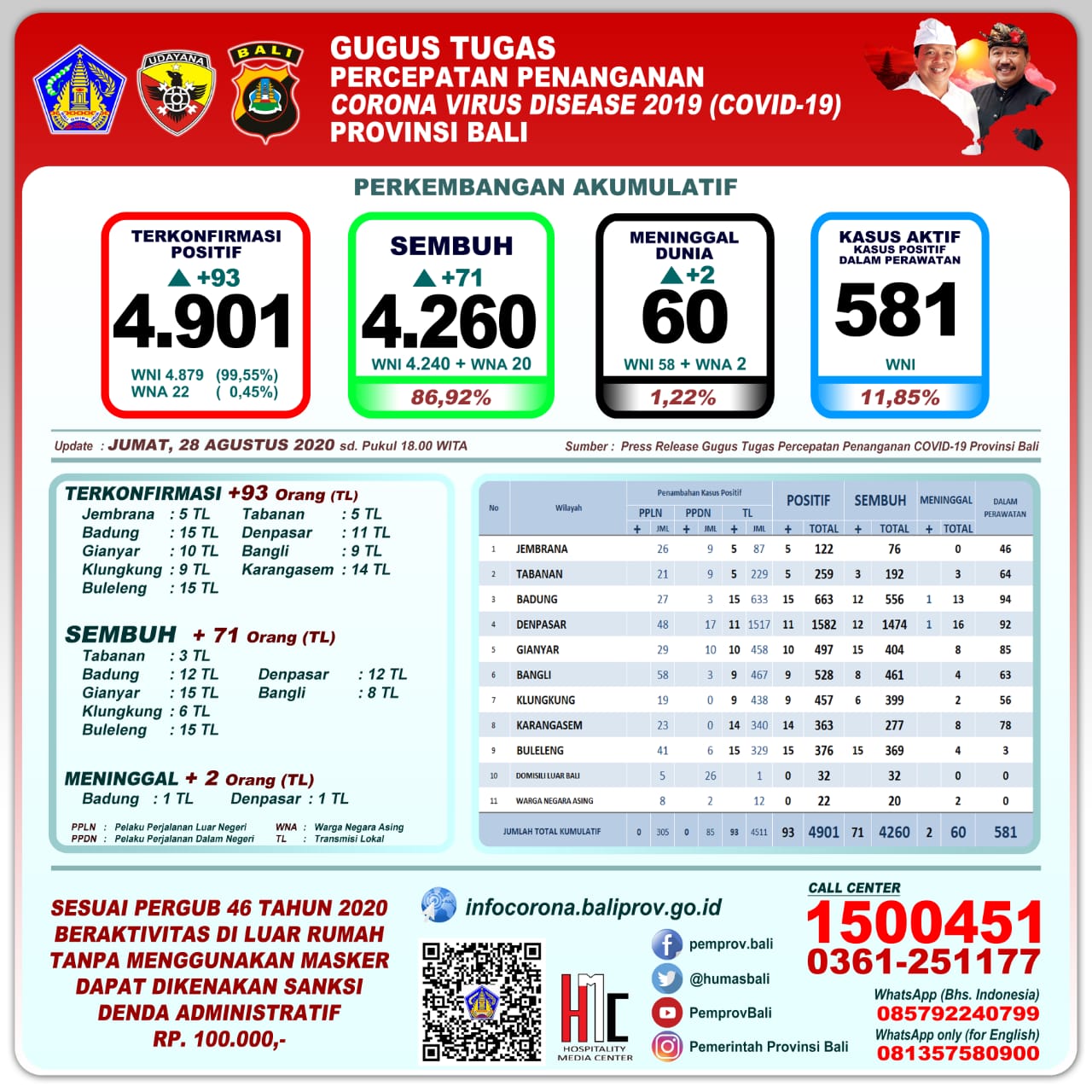 DIKSIMERDEKA.COM, DENPASAR, BALI - Perkembangan Pandemi Covid 19 di Provinsi Bali per Jumat (28/8)...