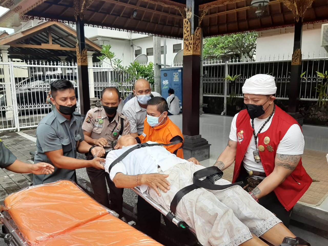 Ahli waris tanah sengketa di Ungasan, Made Suka jatuh pingsan usai sembahyang di pura PN Denpasar,...